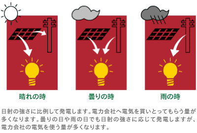 :太陽が出ていれば発電します。但し曇るとあまり発電はしません。